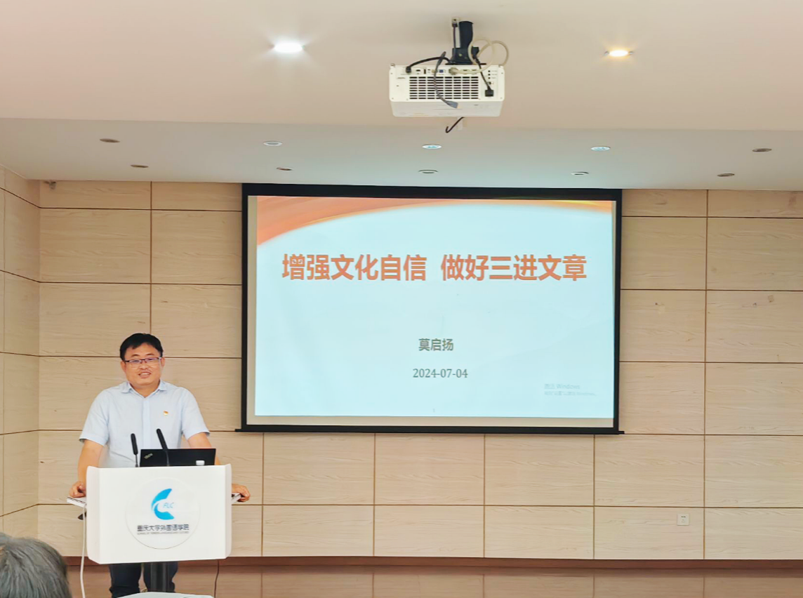 莫启扬院长带领我们回溯了中华文明的悠久历程,着重阐述了其独有的五大特性:连续性、创新性、统一性、包容性、和平性,深刻剖析了这些特性如何共同构筑起我们坚定的文化自信,并阐明在高等教育体系中,这份文化自信占据着核心地位,是不可或缺的精神支柱与灵魂所在。莫院长在讲座中特别指出,文化的传承与弘扬必须深深植根于价值观教育之中,以培育学生深厚的文化认同感和自豪感,而强调社会主义核心价值观在当代中国教育中的重要作用,也进一步体现了开展“三进”工作的必要性。