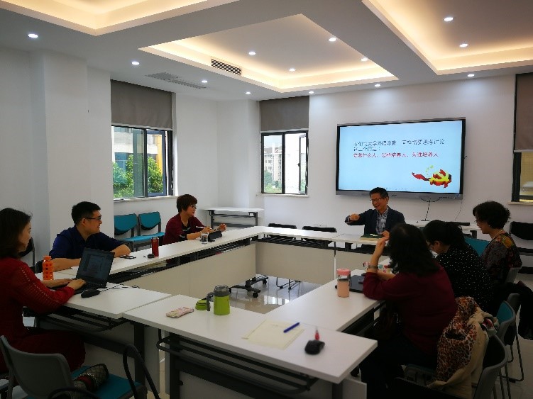 大学英语第二教工支部创新课程组党小组在大学外语教育中心422研讨室,开展了以探讨大学外语教育中的人才培养为主题的主题党日活动,会议由党小组组长熊菲同志主持。受到习近平总书记在学校思政课教师座谈会上重要讲话精神的启发,会议主要探讨了三个问题:为谁培养人、培养什么人、怎样培养人。