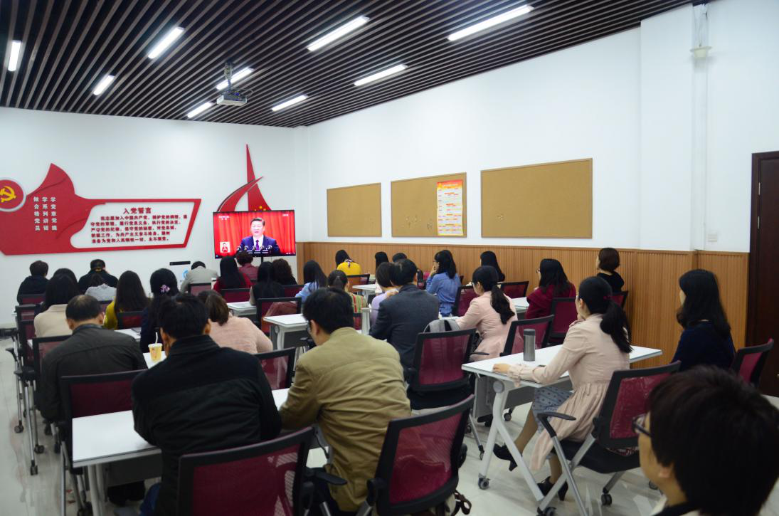 党委组织学院师生集体观看了中国共产党第十九次全国代表大会开幕会。学院党政领导班子,党委委员,纪委书记、委员,教工支部书记,学生支部书记,行政支部全体党员,学生党员及入党积极分子代表参加了观影。