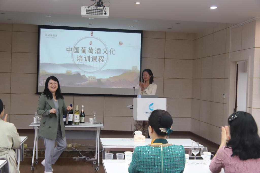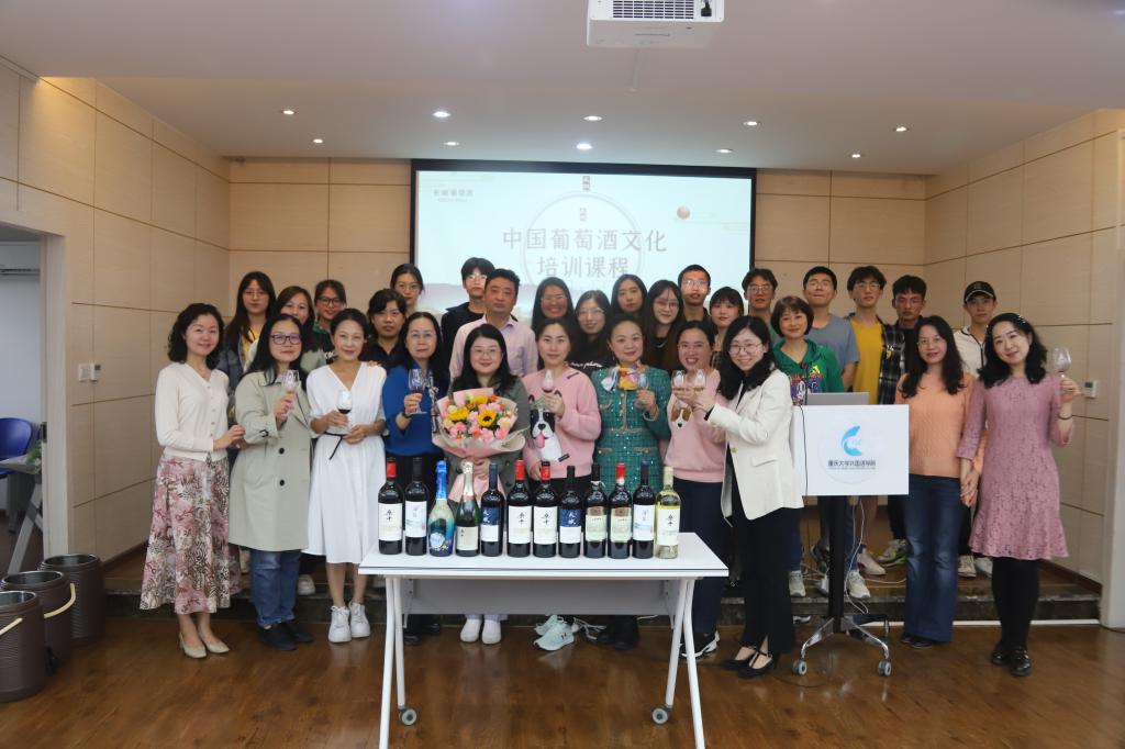 孙莺老师曾获得英国葡萄酒与烈酒WSET Diploma文凭和波尔多左岸骑士会荣誉骑士勋章等称号,同时也是重庆市《侍酒师》和新职业《酒体设计师》职业培训考核标准专家组组长。孙老师以生动的语言和实物,图文并茂地给大家介绍了中国葡萄酒品种和产区、葡萄酒基础知识、中国精品酒国宴用酒品鉴、以及葡萄酒的存储和餐酒搭配。在讲解理论知识过程中,孙老师从开瓶、倒酒、商务礼仪等方面带领大家品鉴七款葡萄酒,师生们兴趣盎然,感叹葡萄酒的世界如此丰富多彩,现场气氛轻松活跃。