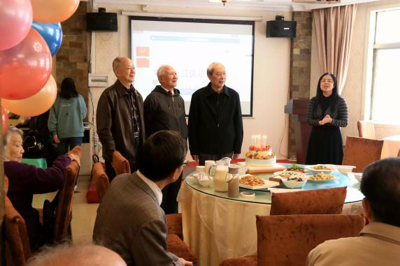 然后,学院彭静副院长(主持工作)代表学院对老同志们致以节日的问候,就学院发展的总体框架、队伍建设、人才培养和学术发展几个方面向老同志们一一介绍,并汇报了各方面工作的成果。会上学院领导与离退休教职工就学院的发展进行了热烈的交流。希望老同志们老有所乐、老有所为,希望大家都开开心心地安享晚年幸福生活。最后,大家唱响生日快乐歌,向2017年满80岁,90岁的老寿星送上生日祝福。