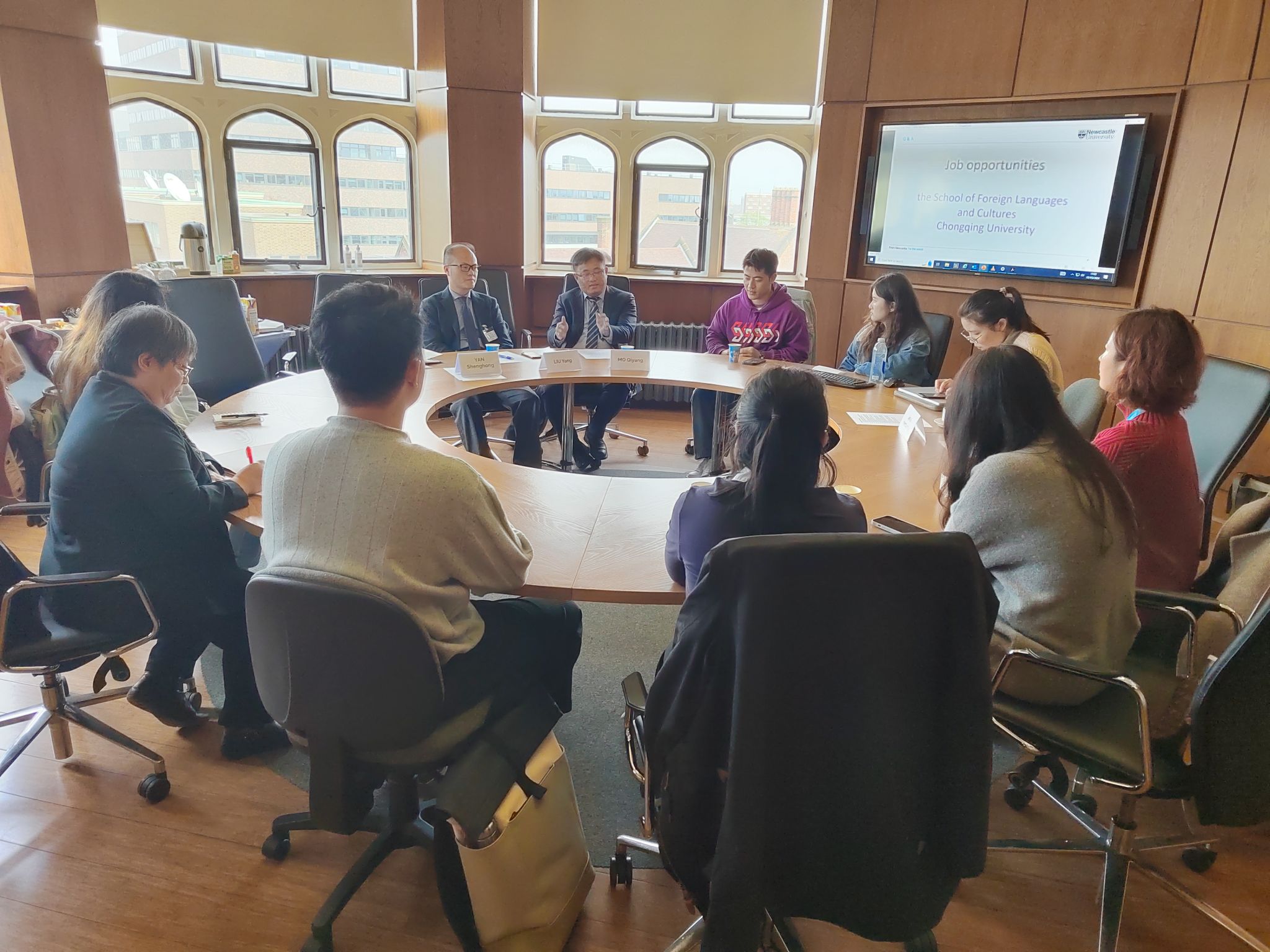 5月3日,莫启扬院长访问团抵达英国纽卡斯尔大学,与现代语言学院院长Andrea Wilczynski、副院长Myriem El Maizi、研究生教育主任Jens R Hentschke、纽卡斯尔大学国际处国际学生招生官Rachel Lu、口笔译硕士项目主任Phoebe Yu、 口笔译硕士教师Ya-Yun Yalta Chen进行了会面。双方就翻译硕士联合培养、本科生交流和院际长期合作等方面进行了深入讨论,并就未来可能的合作方向交换了意见。会谈取得了丰硕的成果,为两校未来的合作奠定了坚实的基础。会后,莫启扬教授团队还与纽卡斯尔大学翻译专业博士生进行了座谈,为学院引进优秀人才创造了条件。在纽卡斯尔大学的访问取得了丰硕的成果,为两校未来的合作奠定了坚实的基础。