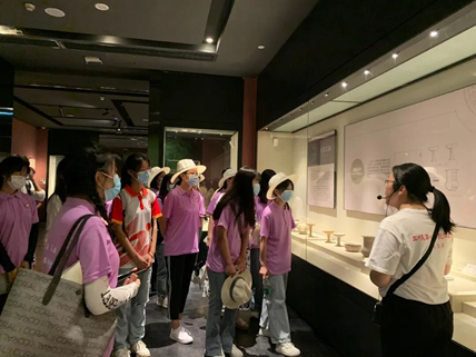实践团队首先到达了忠县博物馆,这座有着悠久历史的博物馆,如今已经开展了100余次教育活动,接待了近60万人次参观游客,在旅游业和历史文化方面为忠县提供了对外的窗口之一。实践团成员通过与博物馆前台管理人员的交流,了解到博物馆的历史发展和运行状态。该博物馆如今不只局限于馆内解说的方式,近几年来馆内人员跟随着互联网发展,开通了官方“忠州博物馆”的网站,游客可以在网站上进行参观和讲解的预约,其方便快捷吸引越来越多的游客到此参观,提高了博物馆的旅游预体验指数。