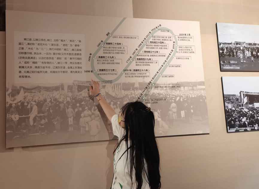 8月5日,在东北地区的实践团成员同时展开实践调研。实践团成员郭仪彤前往先后经历过抗俄、抗日和解放战争,发生过“拒日设领”“傅仪退位”“四保临江”的临江市,走进“四保临江”战役纪念馆,陈云旧居纪念馆,感受发生在这座英雄城市的红色故事。纪念馆用传统与现代相结合的手段展现了东北解放战争时期的战斗场景,一件件旧物向世人诉说着可歌可泣的英雄故事。实践团成员杨嘉仪前往著名的“边外七镇”之一的嫩江市,走进墨尔根古驿站博物馆。实践团成员了解到墨尔根地区在抗日战争时期利用自身驿站历史悠久的优势为东北抗日战争的运输补给作出的巨大贡献。