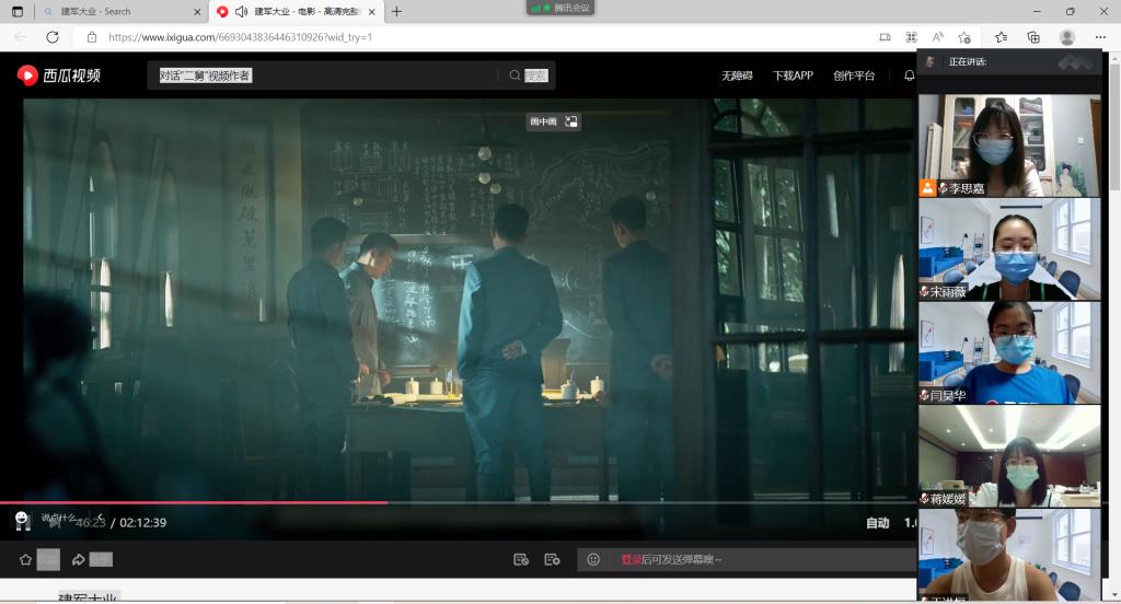 “无问西东”实践团通过腾讯会议开展线上观影活动并在观看后分享讨论观后心得。实践团通过观看献礼建军90周年的历史片电影《建军大业》回顾革命党史,从党的百年伟大奋斗历程中汲取继续前进的智慧和力量。