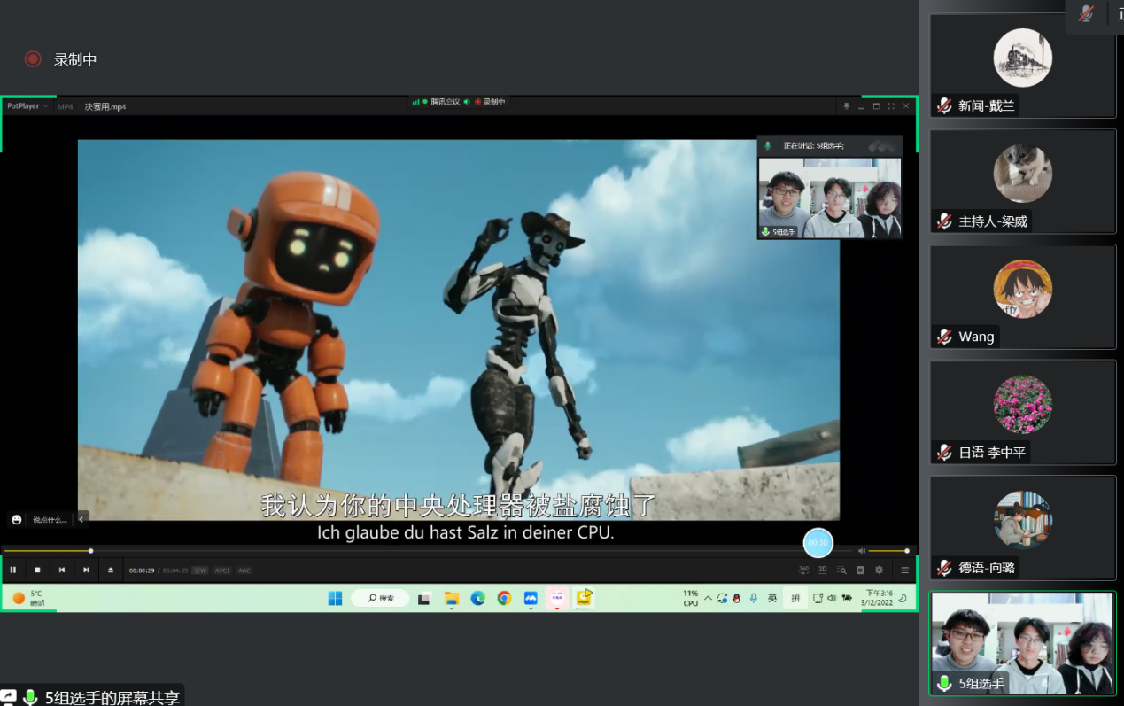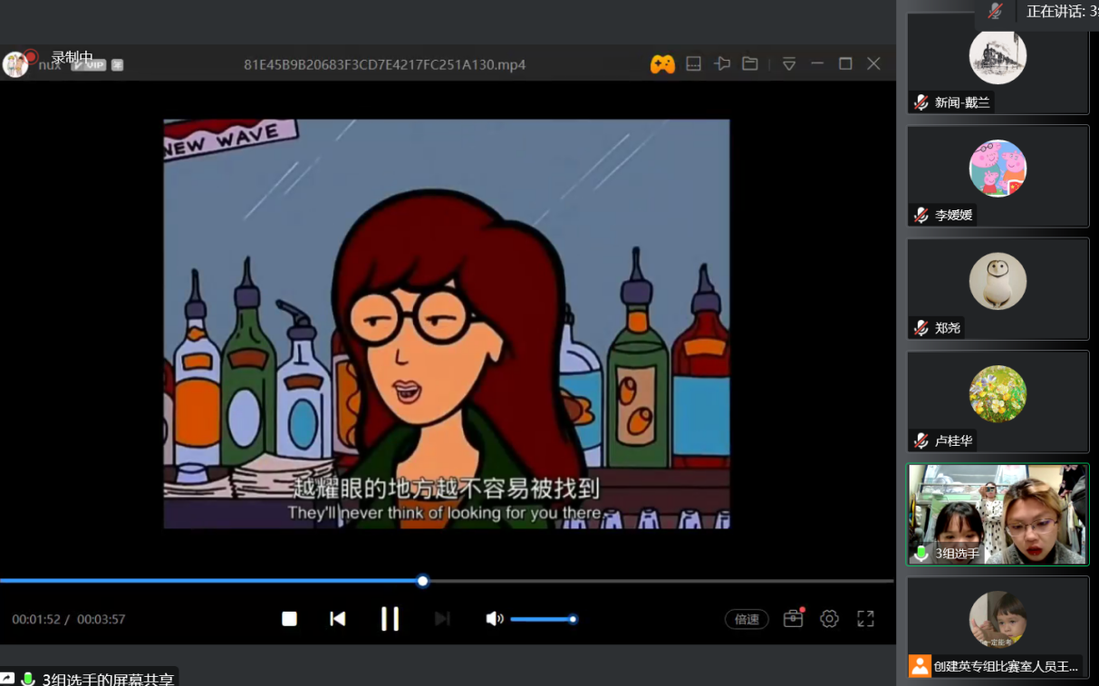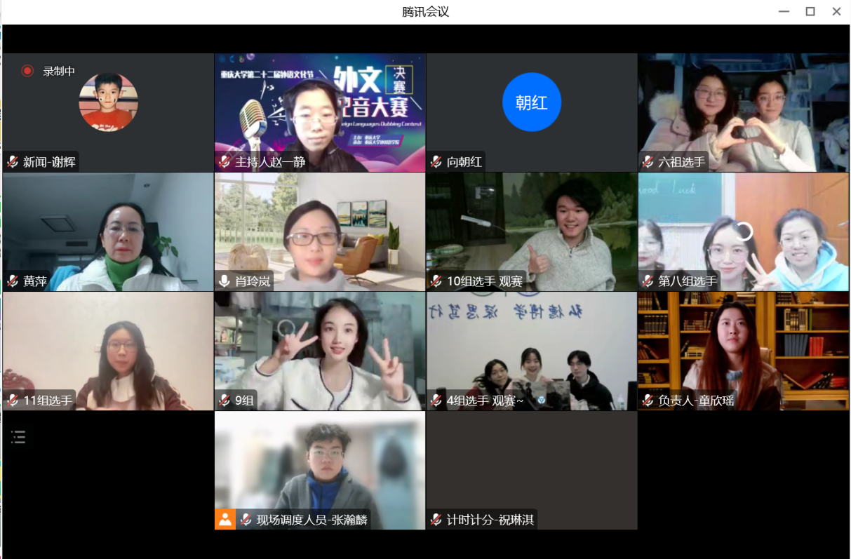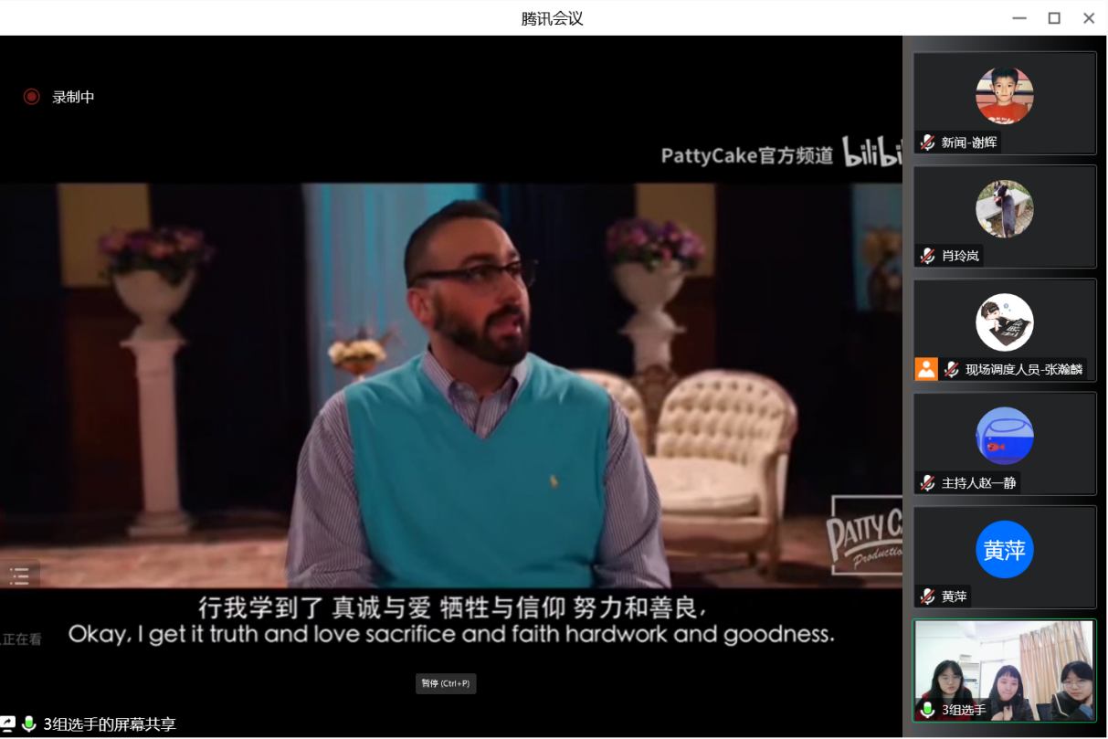 评委老师充分肯定此次比赛并感谢外院团队和工作人员的准备。老师们指出,虽然因疫情形势严峻无法在线下举行外文配音大赛,但线上的形式使配音表演更具沉浸式体验感,使他们可以充分了解影片与角色本身,仔细感受选手们的语音语调。从角色贴合度、发音欠佳到语言表现张力到位、情感十分饱满的变化,展现了热情奔放、沉着自信、不惧挑战、迎难而上的重大学子风采。