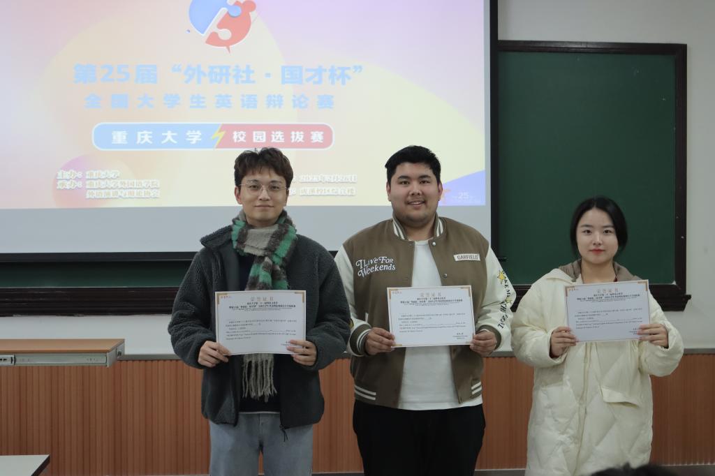 2021级英语专业本科生郭思雨、2019级英语专业本科生刘昳、2020级英语专业本科生李敏仪,物理学院2020级电子信息科学与技术专业本科生伊丽达娜,建筑城规学院2022级建筑类本科生李祐麟、2019级城乡规划专业本科生陈昊隆、2020级建筑学专业本科生马雨萌、2020级建筑学专业本科生孔馨怡等8位选手获得三等奖。