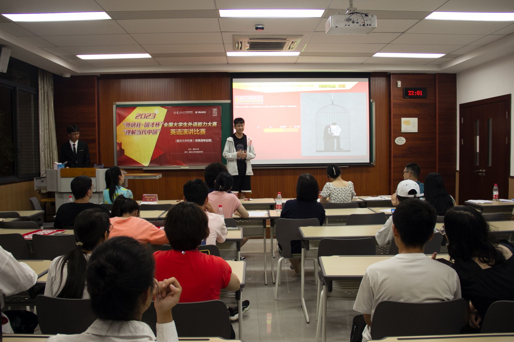 大外中心课程组王旭、熊菲、黄萍、谢佳、刘琳、黄颖、Enrico Mancarella、Joshua Mattei-Lownes等8位老师担任比赛评委;英语专业组英语演讲比赛于9月14日在虎溪校区第一教学楼进行, 伦理电影