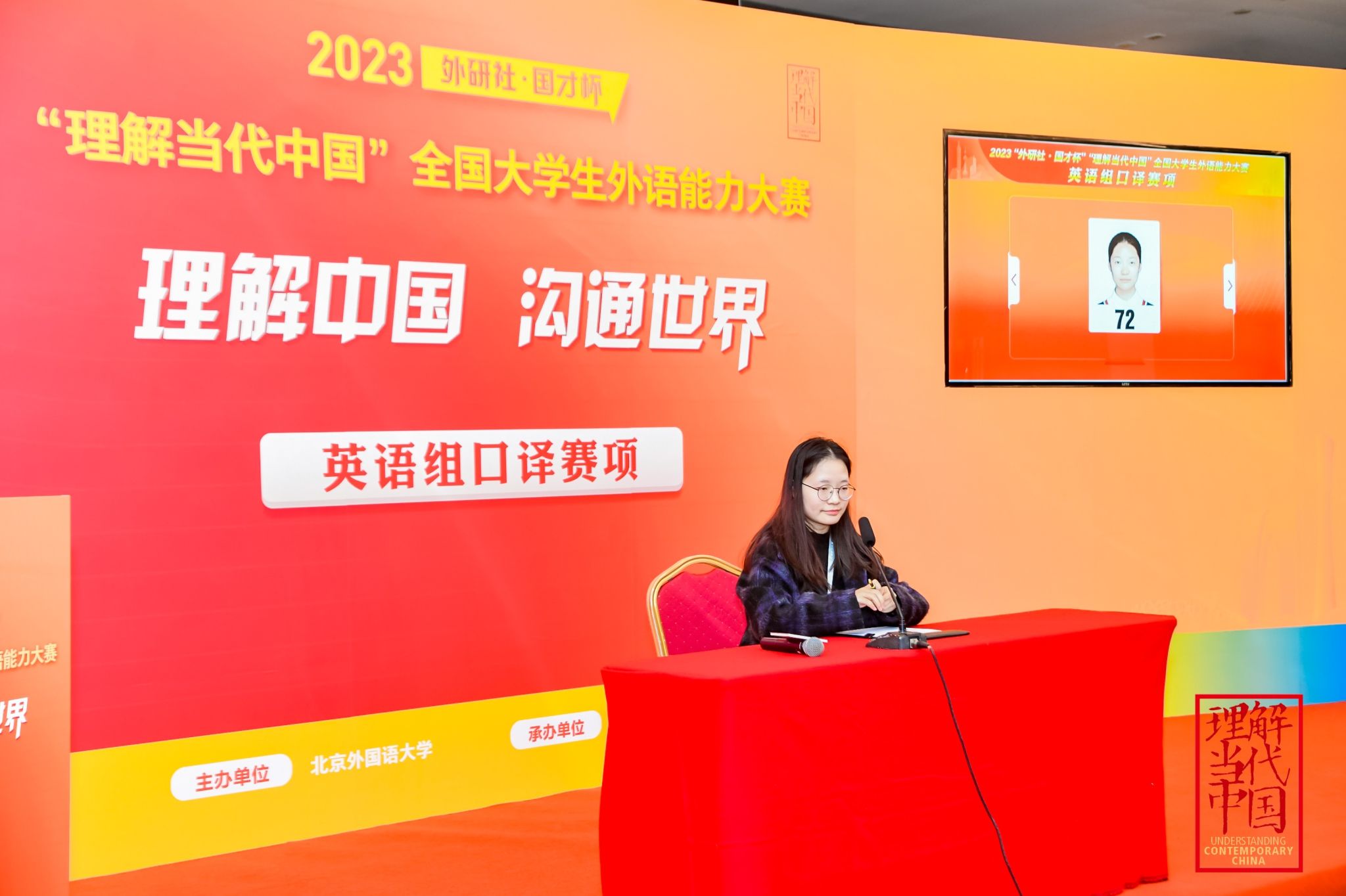 翻译硕士何林香在强手如林的赛场中,凭借较强的信息处理能力和口译实战技巧突出重围晋级国赛第二阶段入围全国百强。在第二阶段中仍为英汉交替传译,包含欧元区通胀情况、人工职能发展内容等考点。何林香以稳定的临场反应,较强的心理素质完成比赛,展现出较好的国际传播素养,并赢得赛项银奖。