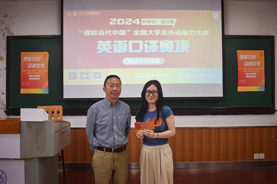 评委老师范定洪对本次比赛进行点评发言。范老师指出,此次口译比赛紧扣“理解当代中国”主题,将口译学习与习近平新时代中国特色社会主义思想学习有机地融合起来,他建议选手们以后参加此类比赛时,要提前针对比赛的主题做好准备,储备好相应专业词汇量;他提醒选手们在未来学习中加强对全球性议题的关注,增加专业术语的积累,注重平时口译台风的培养,提高听众意识。