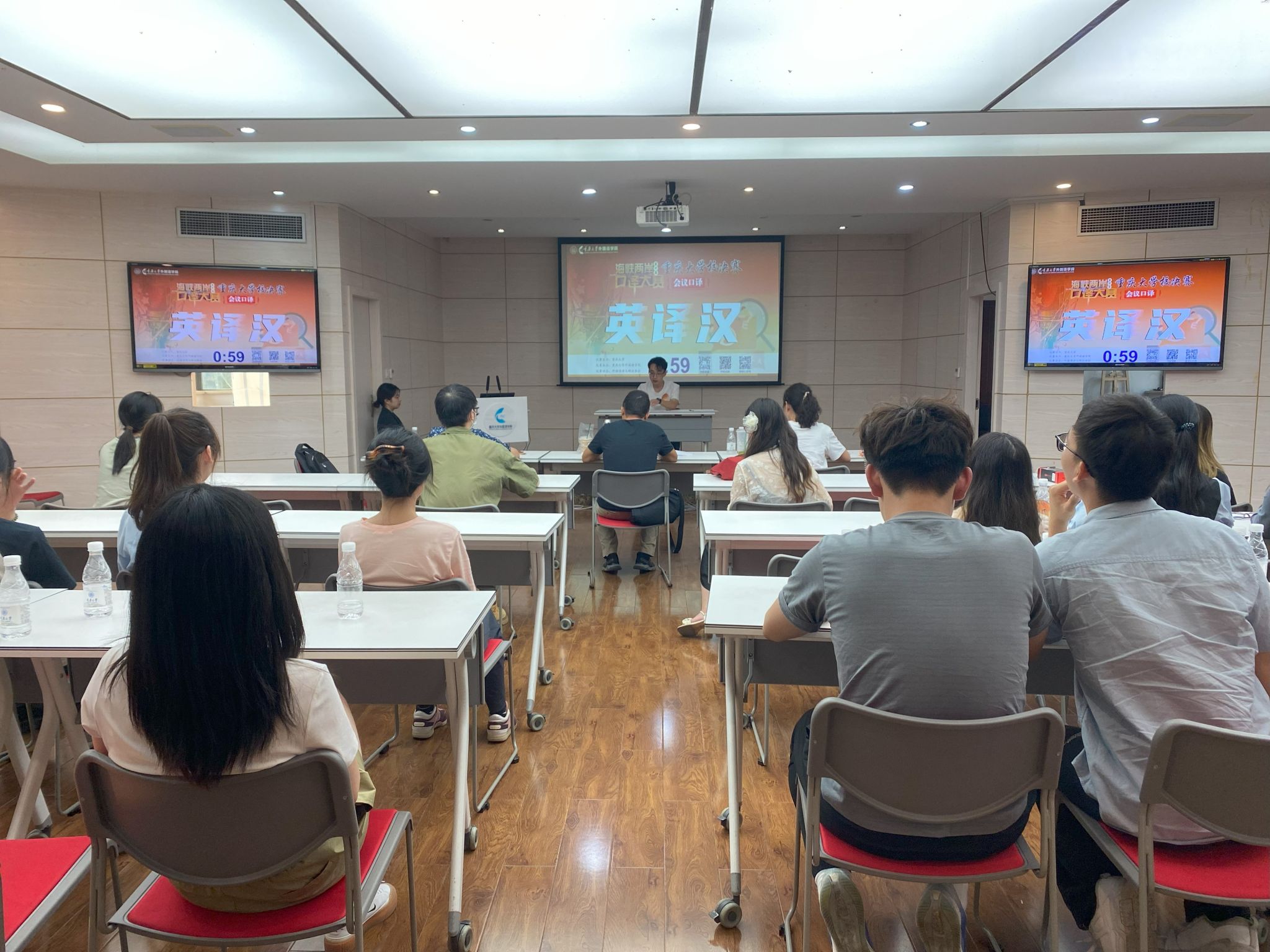 进行,由英语系甘霞、李媛媛两位老师担任评委。赛题以英汉交替传译的形式进行考查,英译汉赛题为“learning tourism”,汉译英赛题探讨了“课间时长调整”的问题。选手们在有限的时间内完成了高质量的英汉互译,展现了他们出色的语言技能,最终14位选手在激烈角逐后顺利晋级校决赛。