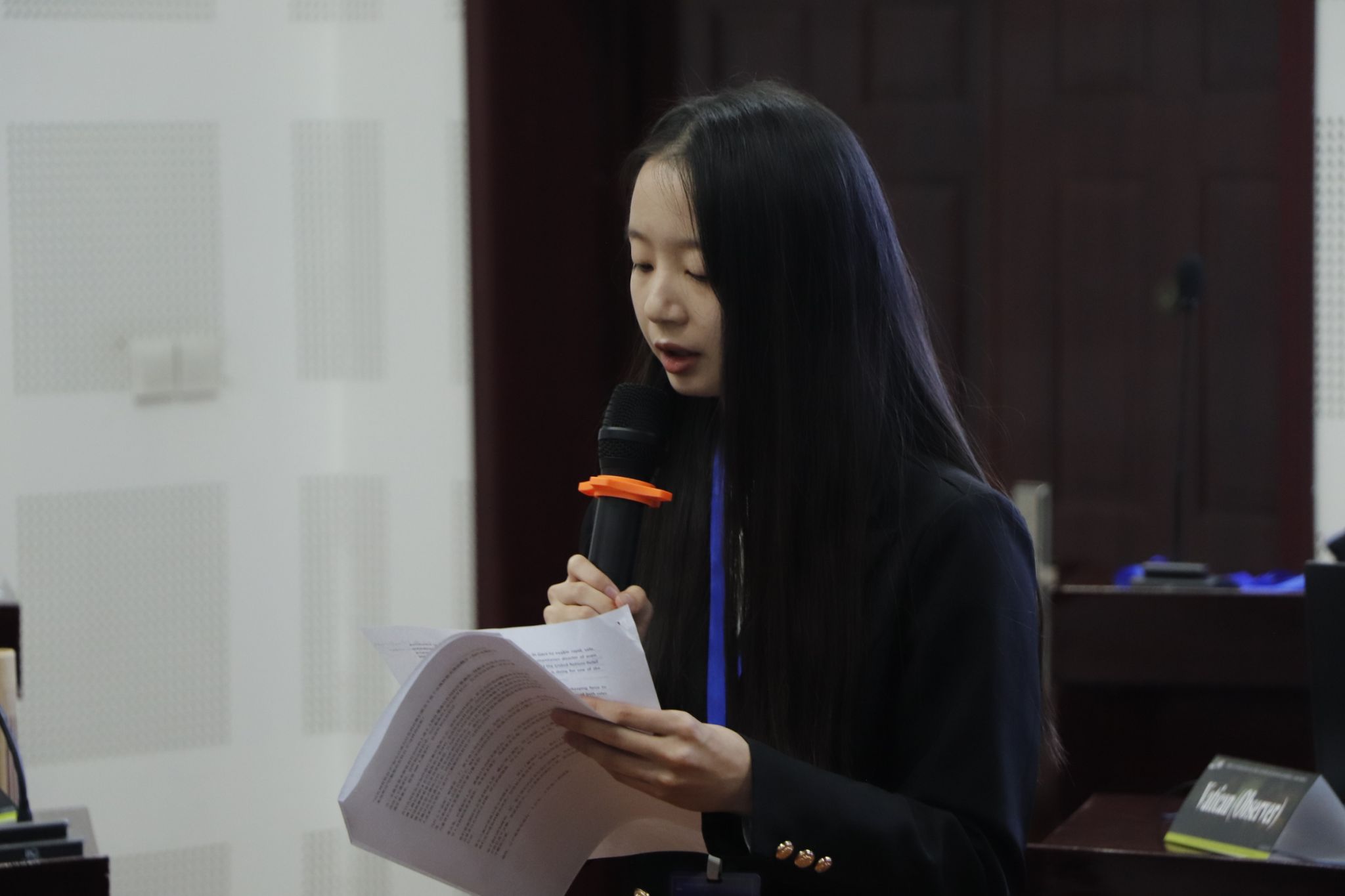 于蕾在联合国大会第一委员会(GA1,First Committee of the United Nations General Assembly)“2023年中东局势:达成和平解决方案”的议题中,作为巴西代表参加会议,呼吁参会代表团关注战争给无辜平民带来的苦难,针对达成即刻达成停火协议、维护中东地区安全等问题展开积极讨论,通过对话和谈判解决分歧,最终成功达成中东地区可持续的和平解决方案。