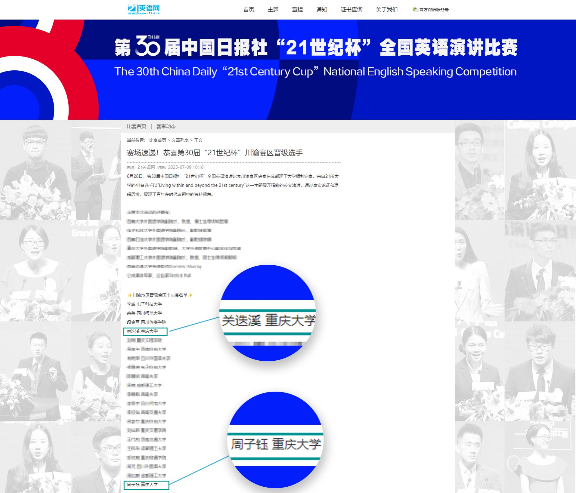 第30届“21世纪杯”全国英语演讲比赛川渝地区决赛于2025年6月28日在成都理工大学第三教学楼3104报告厅举行。大赛由中国日报社指导,21世纪英语教育传媒主办、成都理工大学 伦理电影