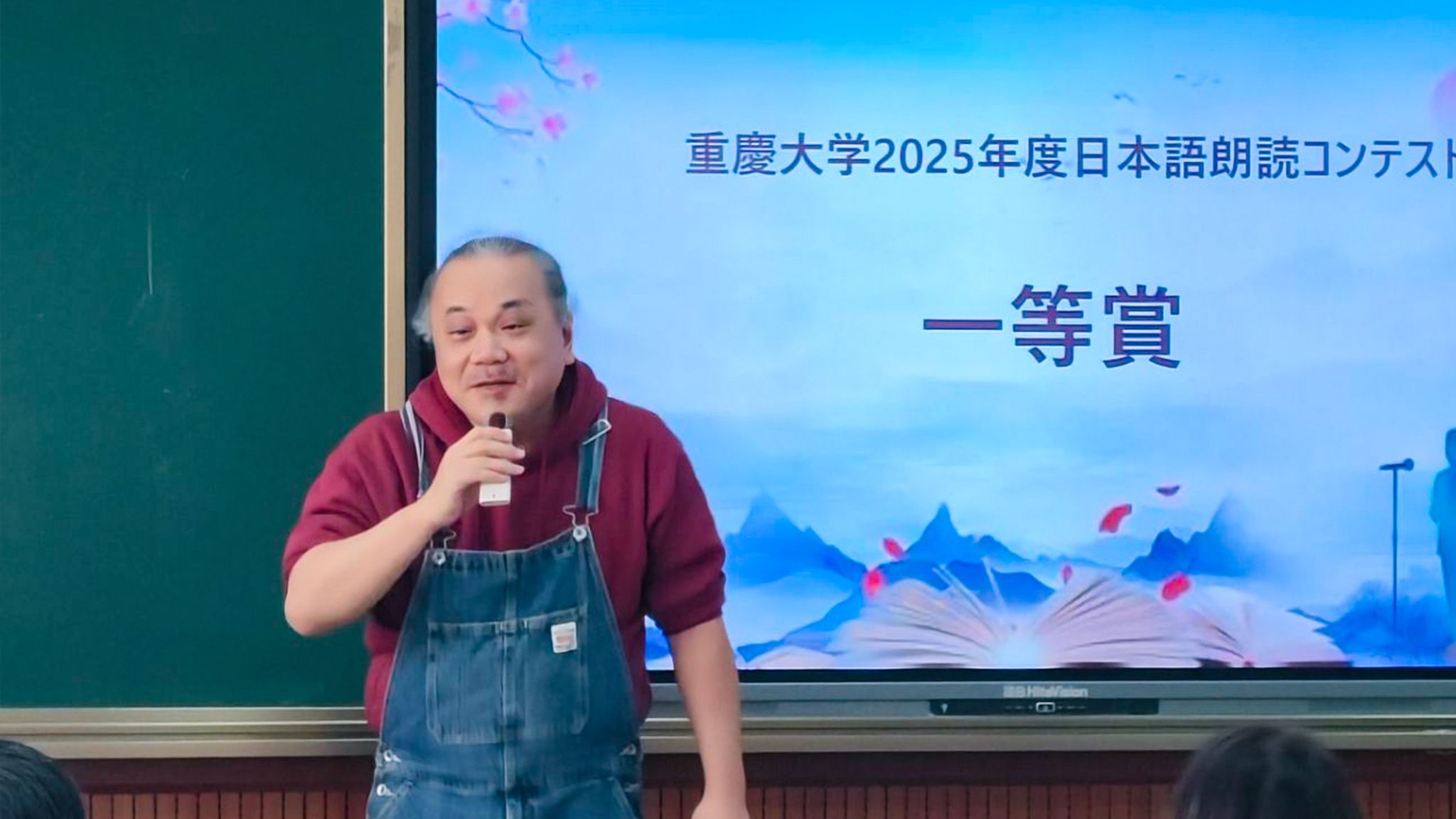赛后,日籍教师乡原章对选手们的表现进行总结点评。他首先肯定了大家勇于登台展示的胆识,并对整体表现给予高度评价,特别指出几位选手的演绎令人惊喜、印象深刻。同时,他提出三点建议:一要注意台上仪态,做到大方自然,保持与观众的眼神交流;二要准确把握外语中的感叹词与句末语调变化,让表达更自然流畅,情绪传递更到位;三是在处理艺术性较强的文本时,应敢于放开表现,增强艺术感染力。
