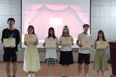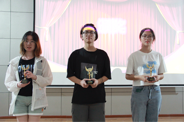 活动临近尾声,主持人组织现场观众投票。综合现场观众投票结果以及学生评委评审结果,最终,英语1班获得团体一等奖,英语2班、英语3班分别获得团体二等奖,日语1班、英语4班、德语1班分别获得团体三等奖。其中,英语3班获得“最佳编剧”奖项。而来自英语3班的廖文静同学和来自英语1班的庞俊杰同学则分别获得“最佳女主角”和“最佳男主角”奖项。