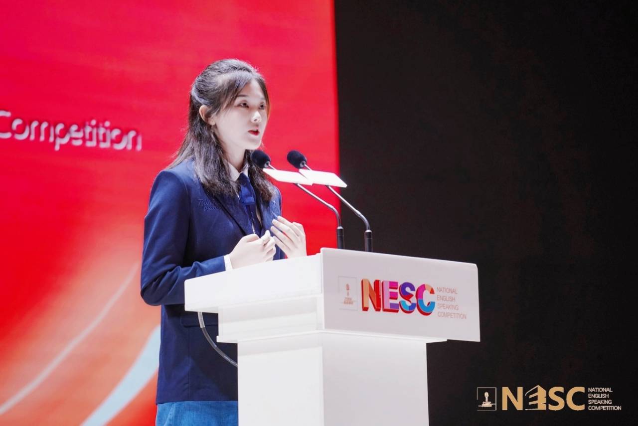 大赛包括4分钟已备演讲、2分钟即席演讲和2分钟提问回答等三个环节。在已备演讲环节,杨宇瑄围绕“Protecting the Blue Planet”的主题,以地球和人类的存在时间对比开篇,提出人类自封“地球之主”是自私且自大的行为。接着,她举例论证了人类为满足自己的利益给地球带来的伤害,森林被砍伐、动物被屠杀,而伤害地球就是在伤害人类自己,自然灾害、资源枯竭无一不是地球对我们的警告。基于以上论述,她号召人们采取行动,弥补我们给地球带来的消极影响,从改变我们对地球的态度开始,“保护地球就是保护我们自己”,“我们并不是从祖先手中继承,而是从后人手中借来了这蓝色星球”,无论穷富,我们每个人都应该采取行动,从日常生活中的小事开始,保护地球。