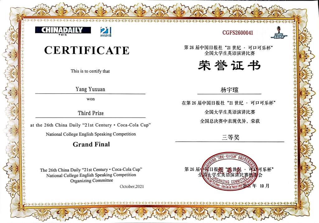 2020级英语专业杨宇瑄同学此前以川渝赛区冠军的成绩成功赢得国赛入场券,本次代表伦理电影