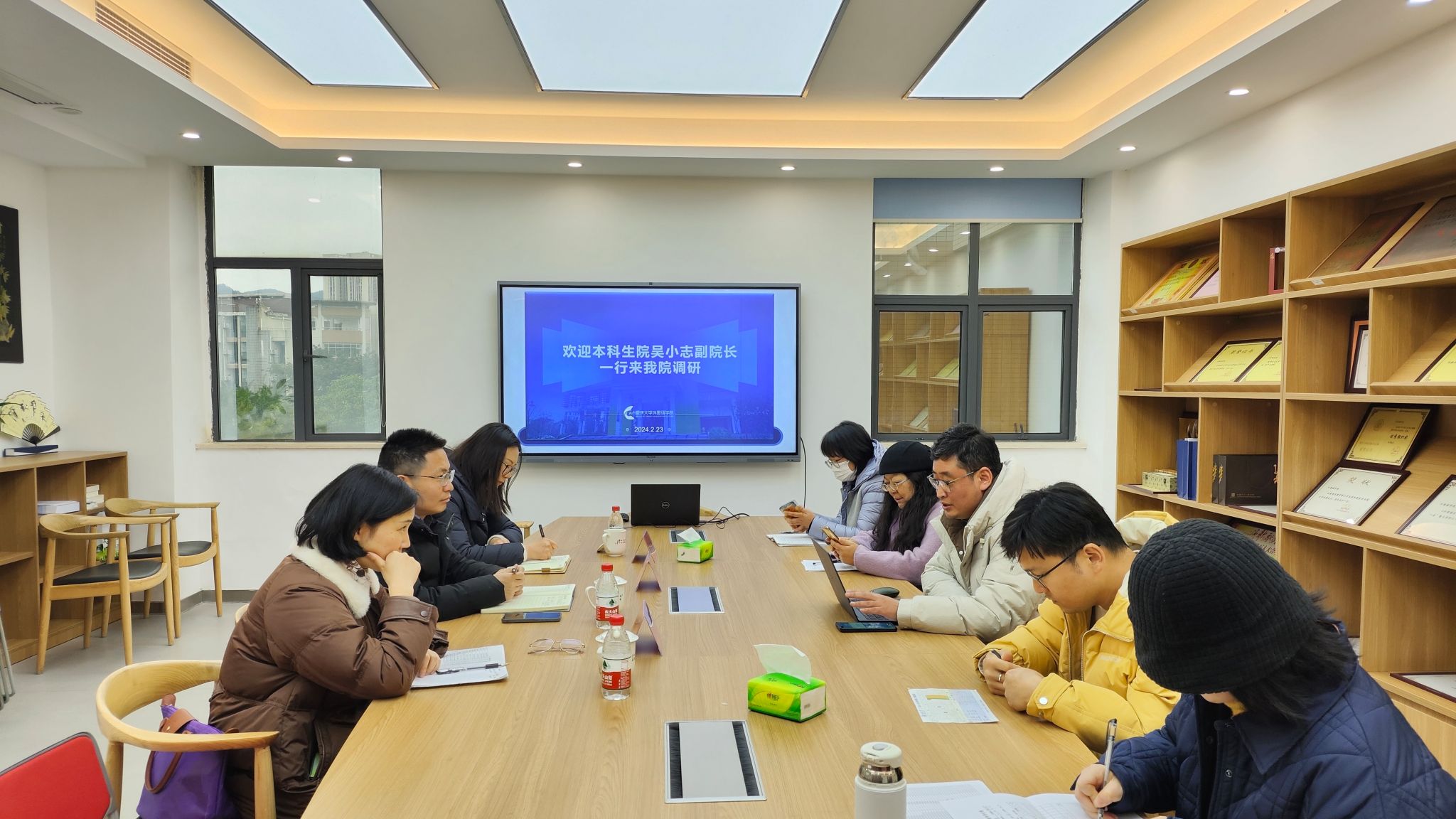 2024年2月23日下午,本科生院吴小志副院长、林津如、周佳老师来伦理电影 调研专业系本科教育创新人才培养工作。 伦理电影 王江副院长、专业系负责人、教学管理人员参加了此次会议。