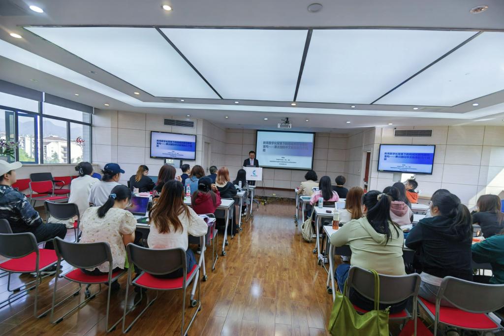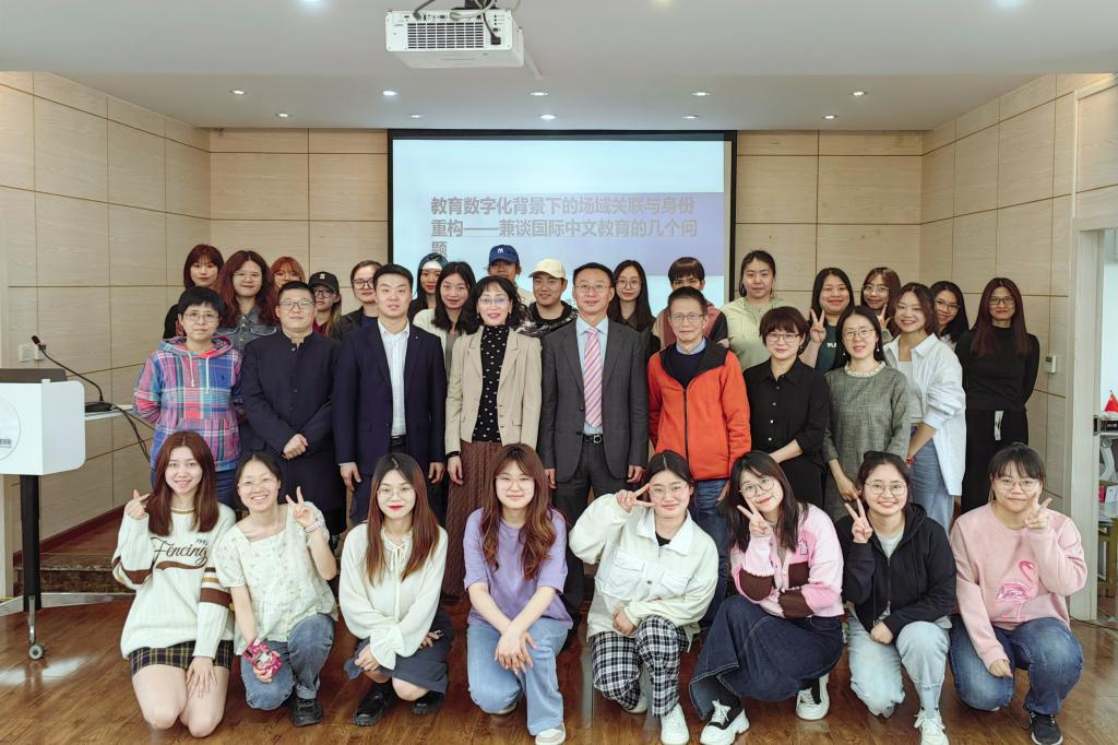邀请华语教学出版社副总主编贾巍巍博士开展了一场以“教育数字化背景下的场阈关系与身份重构”为主题的工作坊。此次工作坊由欧玲书记主持,李小辉副院长、余渭深教授以及汉语国际教育专业的师生,以线上线下结合的方式参与了本次精彩的讲座。