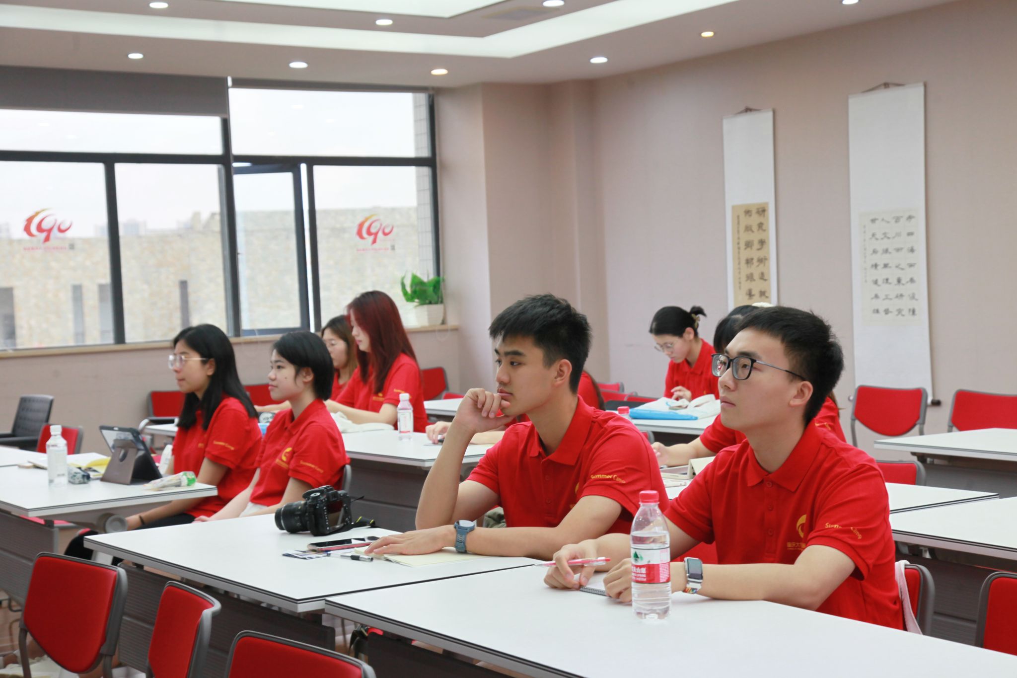 在国际中文教育会场,系主任袁继锋教授介绍了专业的基本情况,中文教育的传统与现实,并以中西观念中不同的语言视角,强调以中文认识世界的重要性,鼓励营员们在AI智能算法所冲击的当下,坚守自我意识和学术理想。