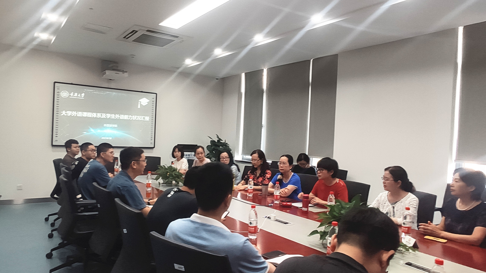 英语水平测试数据和学生参与校级及以上英语类竞赛获奖情况为例,给参加调研的各学院领导、培养方案制定者,以及学生代表分析了各学院的英语学习状况。同时,大学外语调研团队详细地了解了各个学院对于学生的外语学习能力要求,当前为提升外语学习能力的举措,了解各学院对于提升学生外语能力的个性化需求。