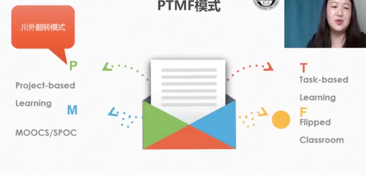 刁阳碧老师作为四川外国语大学的国家精品在线课程《新标准大学英语》主要成员和该校翻转教学团队主要成员,为大家分享了该校现有的翻转课堂教学模式。疫情期间,秉着“停课不停学的要求”,全国各地开展了网络教学。但是面对网络教学的出现,老师们最关心的问题还是“在这样的背景下,能否有效的完成教学任务,如何将线下教学推行到线上”,针对老师们关心的问题,刁阳碧老师为大家分享了川外的大学英语翻转教学案例,并将其总结为PTMF模式。