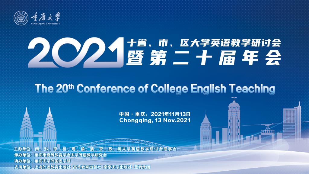 协办,会议主题为:坚持新发展理念,开创大学外语教学改革的新格局,全面提高大学英语教师的综合素养和大学英语教学质量,为建党100周年献礼。受疫情防控影响,本次研讨会采取线上线下相结合的方式:重庆市设立主会场,本地部分专家参加,来自十省、市、区各高校大学外语教学专家、学者、一线教师等近一千人则相聚云端。